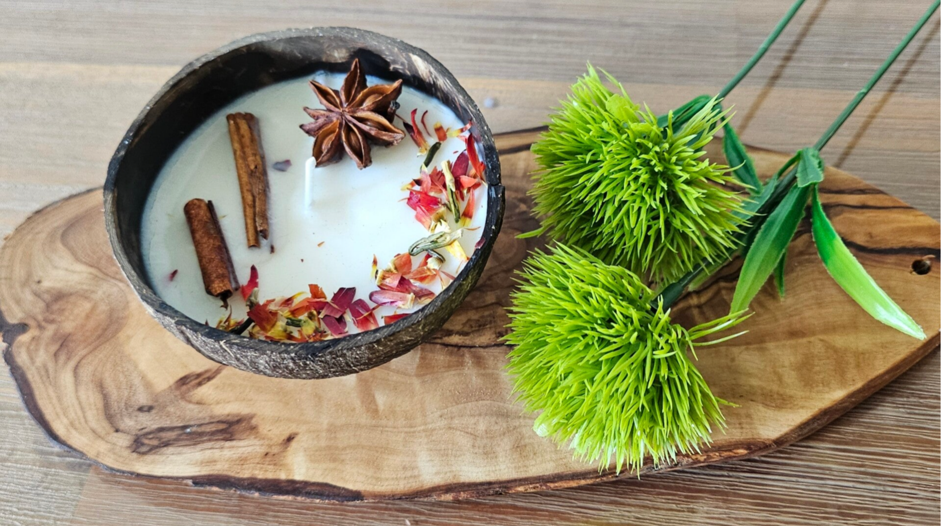 - Decor: Cinnamon sticks, Start Anis, Natural Chrysanthemum Flowers and Rosemary