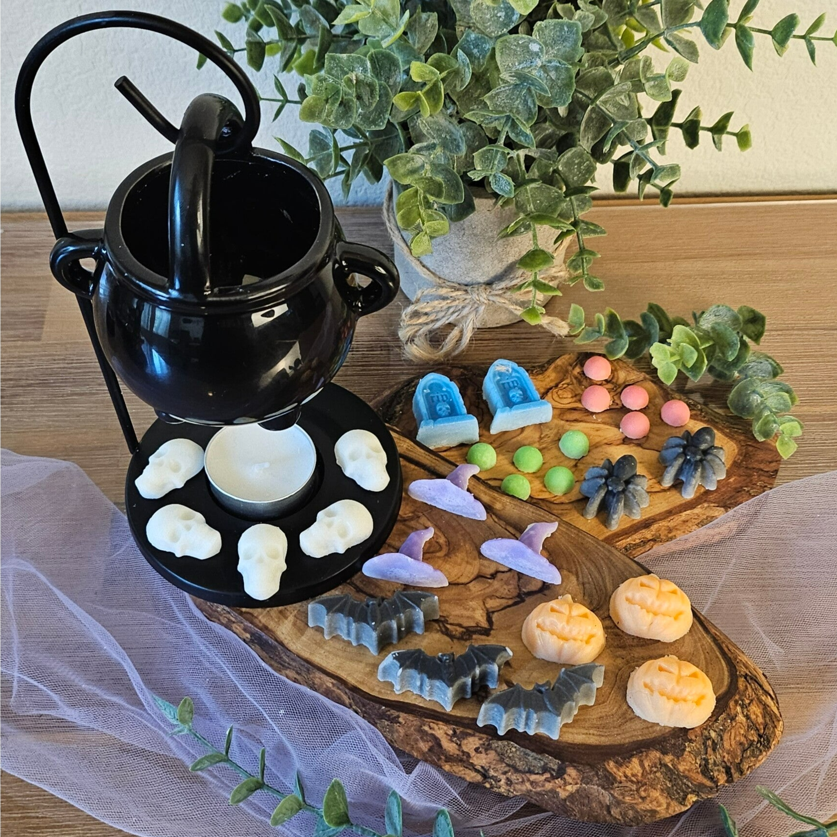 - Black Cauldron Wax Melt Warmer: A charming cauldron-shaped warmer designed to infuse your space with the cozy scent of harvest spices.