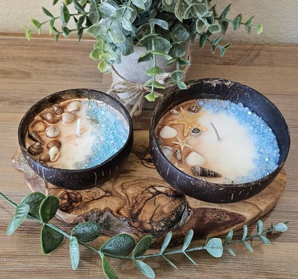 Immerse yourself in the peaceful beauty of the seaside with our Ocean Serenity Candle. Scented with refreshing ocean cypress and creamy coconut, this candle brings the essence of the coast to your home. Each candle is elegantly crafted in a natural coconut shell and adorned with real seashells and starfish, creating a stunning, beach-inspired display.