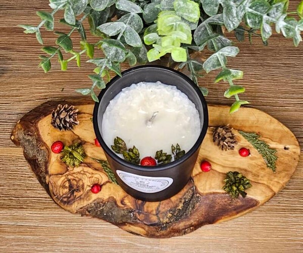 Capture the serene beauty of a winter wonderland with our North Pole Lights Candle. The fragrance evokes a mild forest infused with the crisp, refreshing essence of the cold North Pole, creating a peaceful and calming atmosphere. Hand-decorated with natural green star flowers and red dried canella berries, this candle brings a festive yet tranquil touch to any space.